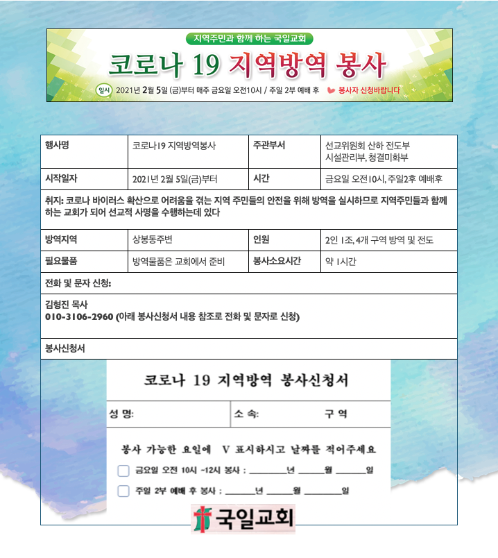 2021년 하반기 국일교회 평신도 교육 안내 (신청서)