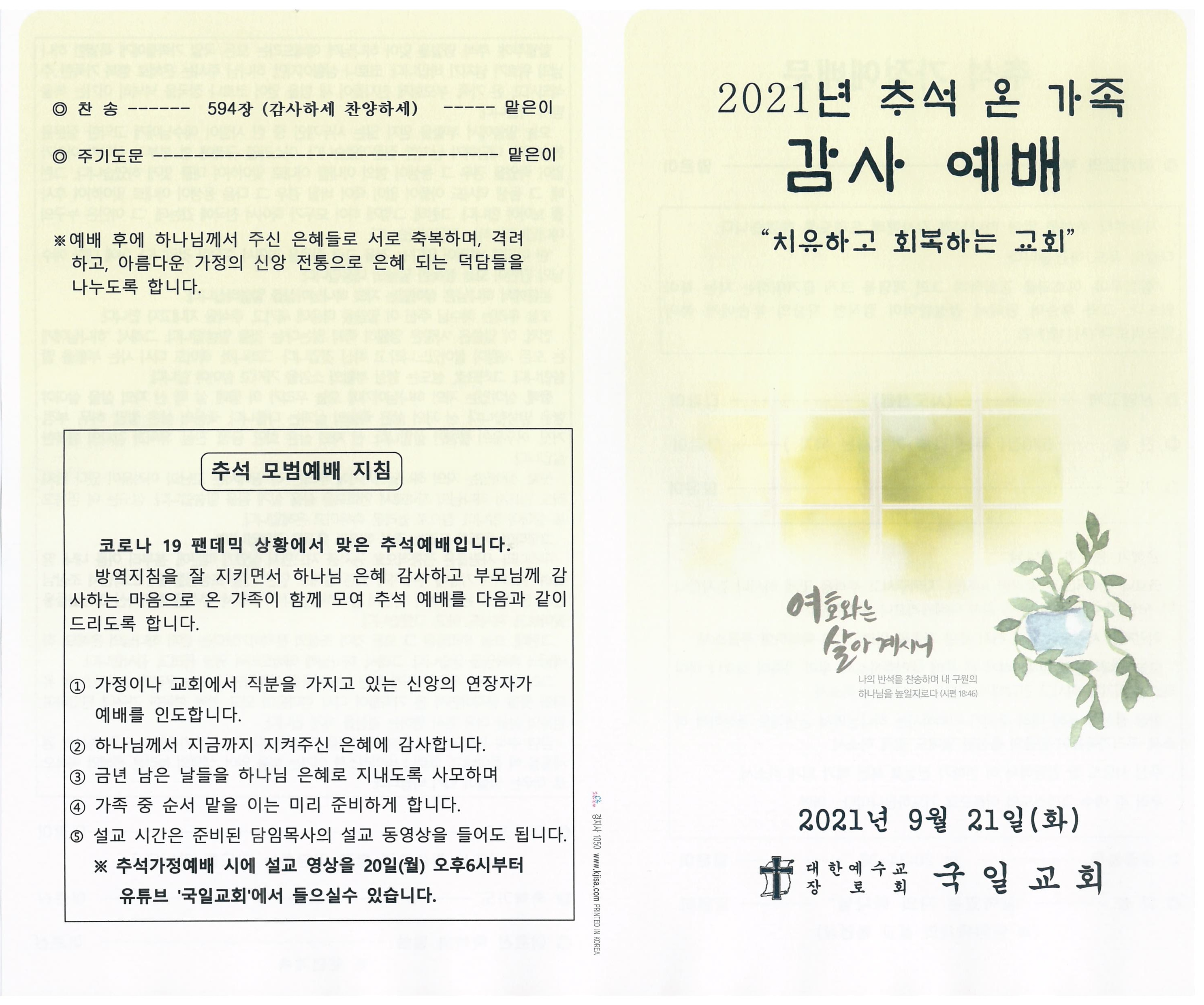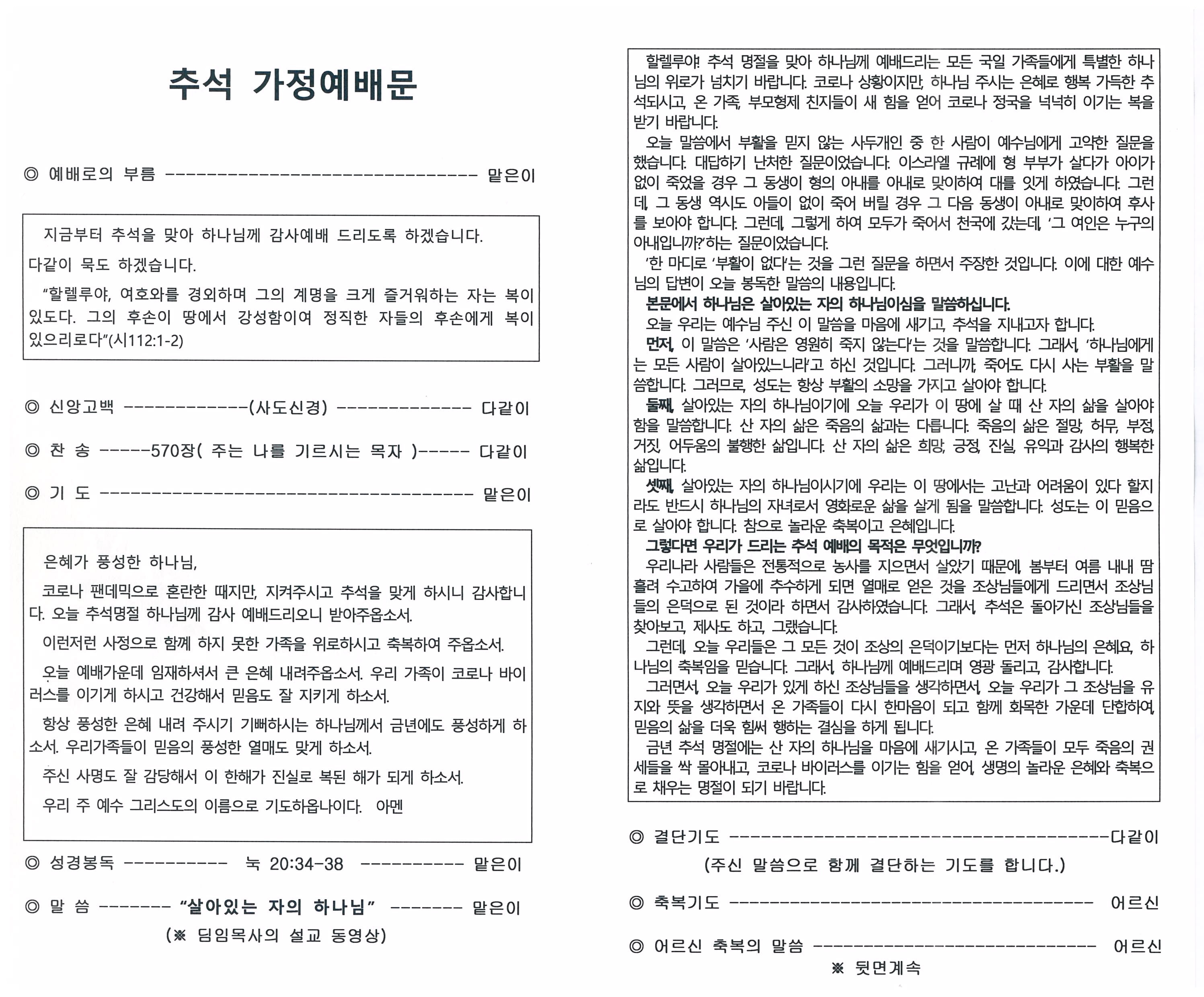 추석 온가족 감사예배 순서지
