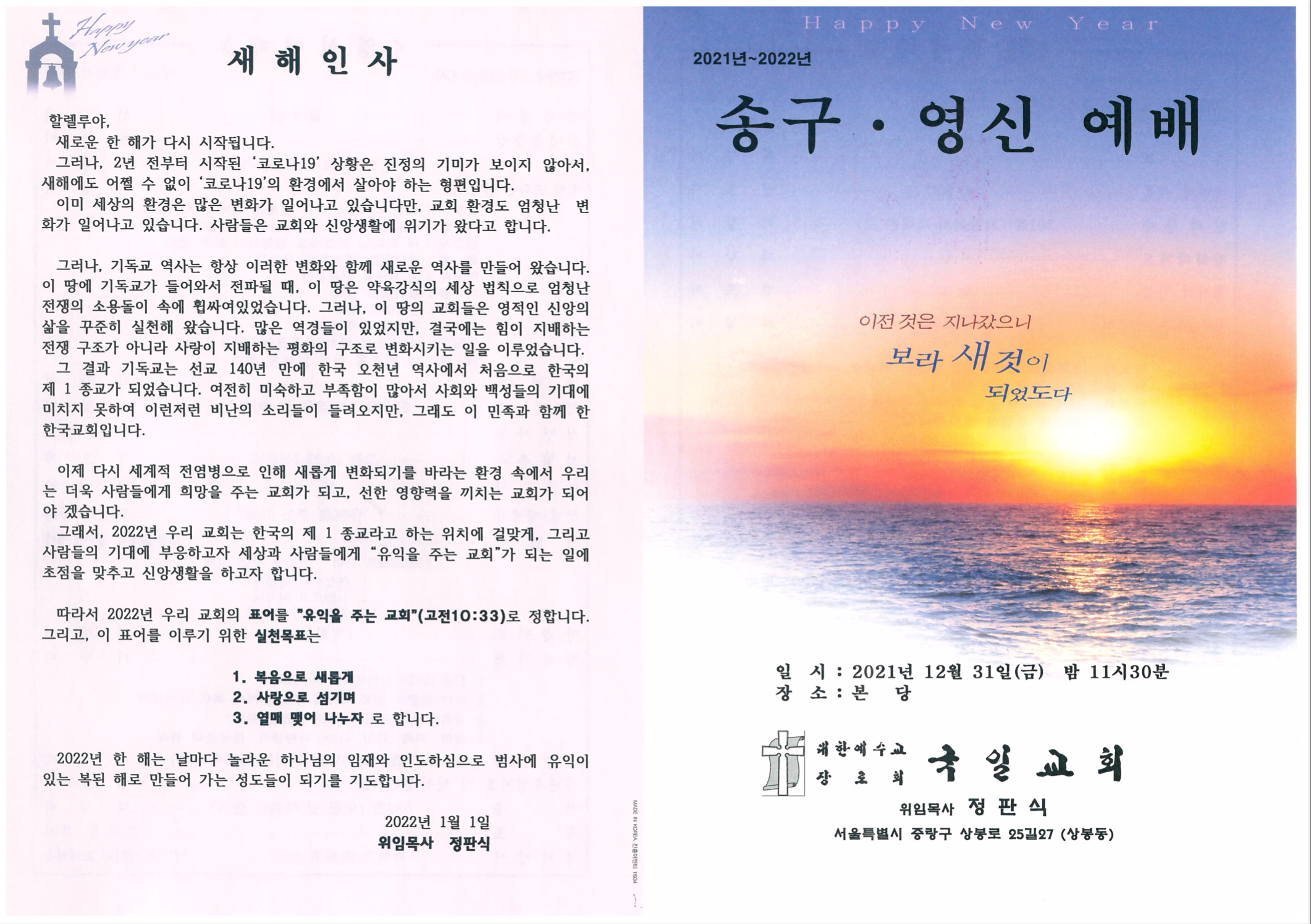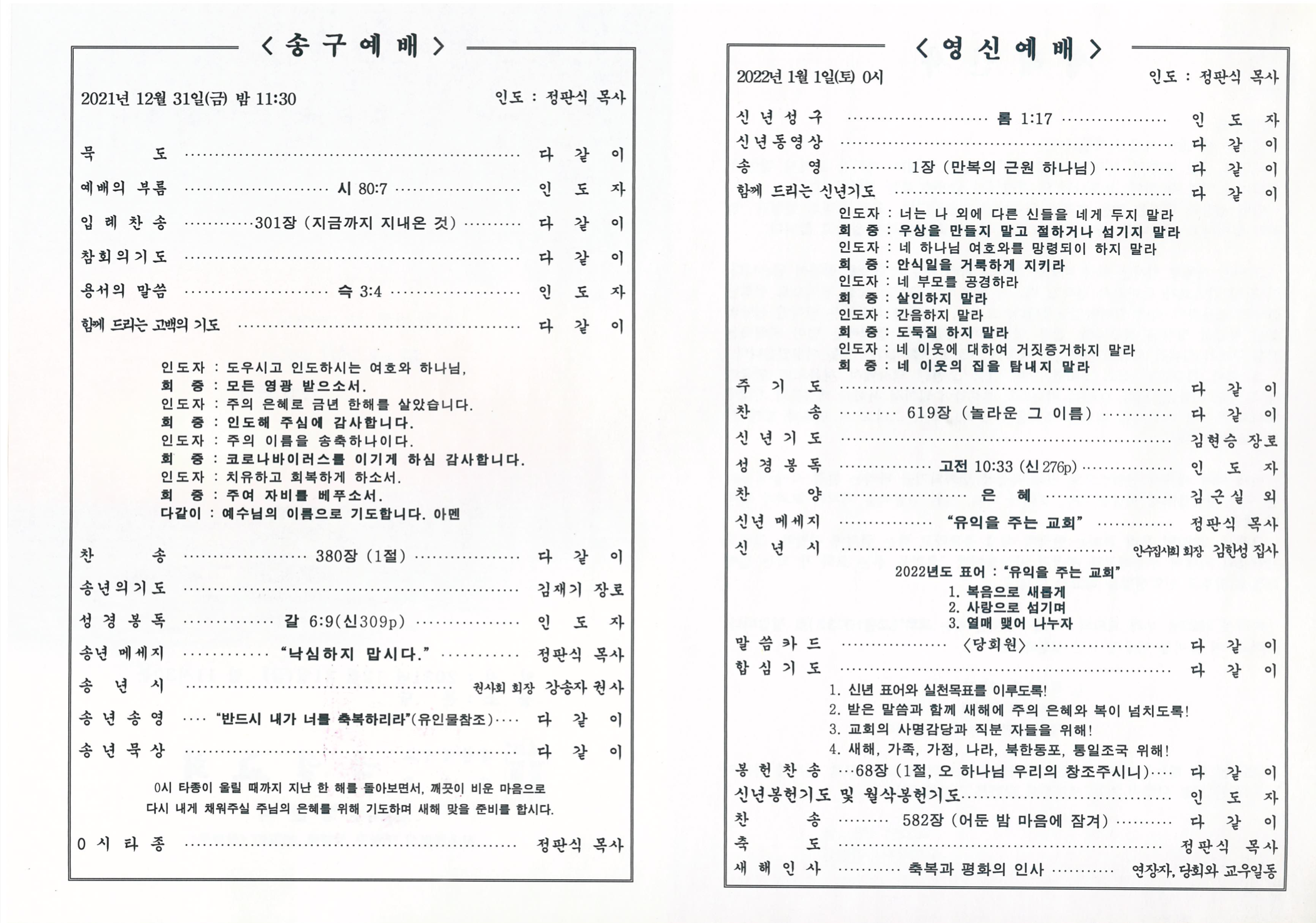 송구영신 예배 순서지