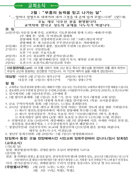 2013년 2월 17일 교회소식