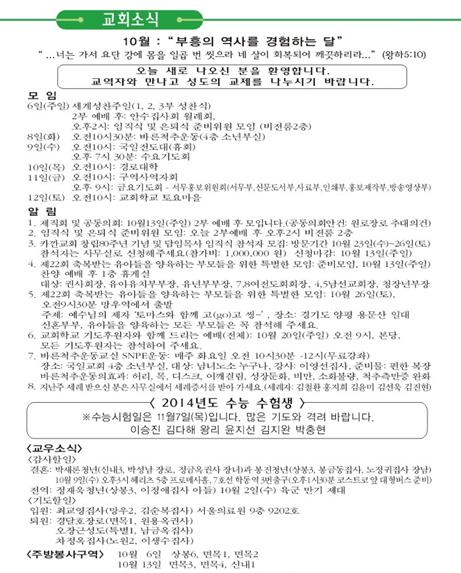 2013년 10월 13일 교회소식