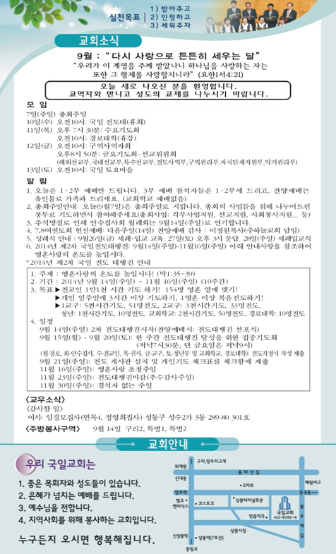 2014년 9월 7일 교회소식