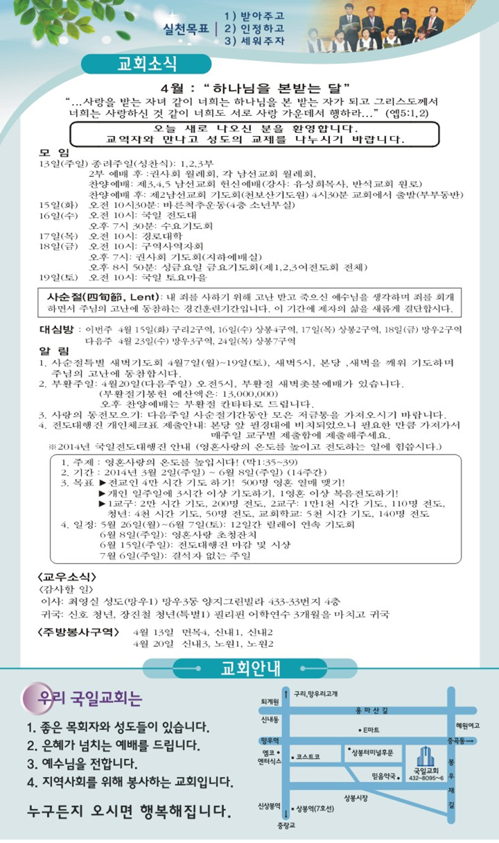 2014년 4월 6일 교회소식