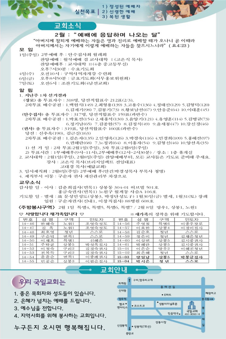 2015년 2월 22일 교회소식