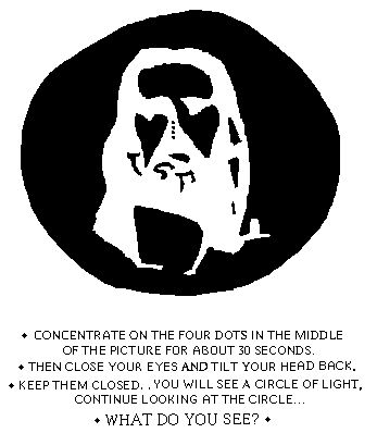 가운데 있는 네점을 30초이상 주시하고 잠시 눈을 감은 뒤 벽이나 천정을 쳐다보세요