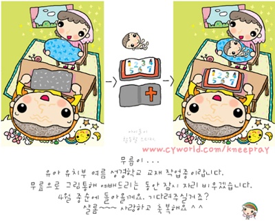샬롬^^ 사랑하는 유년부 친구들! 무르익은 곡식과 과일들을 보며 이 익은 곡식을 거두시는 하나님 아버지의 마음을 닮아 보시는..... 아주 좋은 특별한 기회는 가을 소풍을 지나 친구초청잔치가 있어요.ㅎㅎ 아시죠? 아직 예수님을 구주로 고백하지 못하는 소중한 울 친구들을 유년부로 초청하는 잔치!!!!! 짜잔~~~~~~~~~~~~~~~!!!!!! 기도로 섬기며 준비해용^^ *이곳의 모든 일러스트는 주보 사용외 할 수 없습니다.